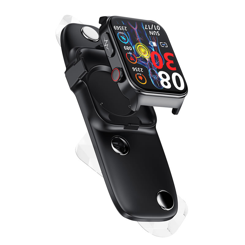 | Function points | Intelligent ECG blood glucose health watch, 1.83-inch 240*284 HD touch screen, ECG, chest patch real-time ECG analysis, ECG monitoring, non-invasive blood glucose,heart rate monitoring, blood pressure monitoring, blood oxygen monitoring, multi-exercise mode, custom dial, online multi-dial, exercise recording.Sleep monitoring, call and message reminder, ultra low power consumption and long endurance.Metal alloy case, silent alarm clock, remote photo, music control, sitting reminder, drink water reminder, weather display, countdown, shake to take photos, mobile phone search. APP name: H Band | ||
